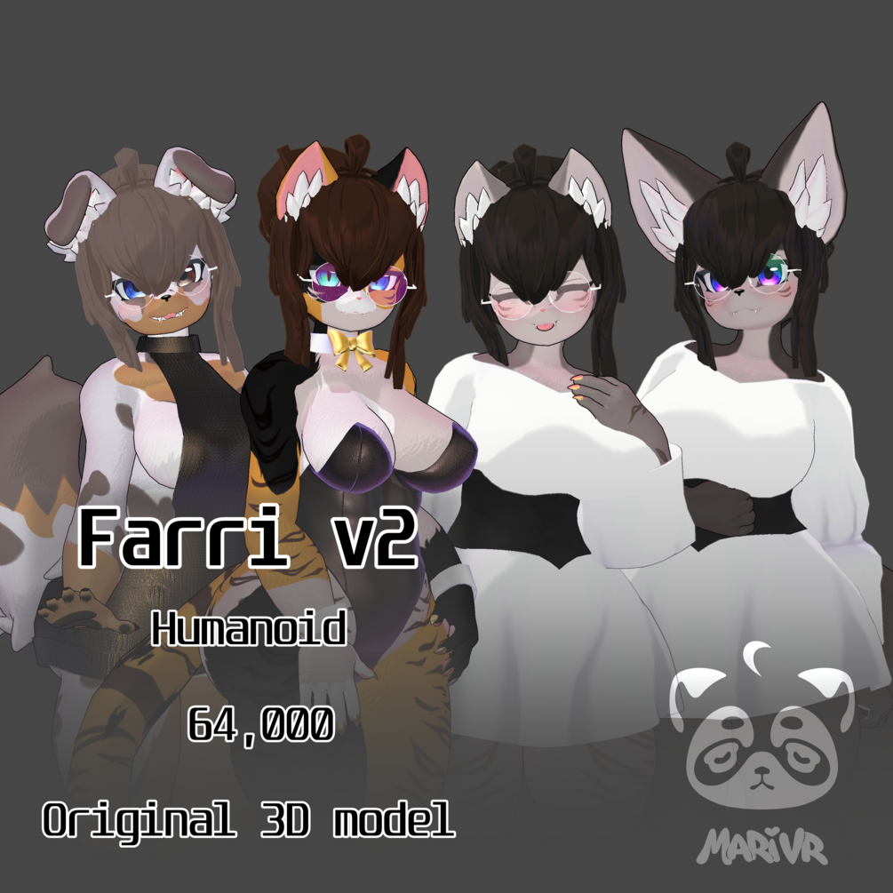 This is an original 3D model compatible with Unity's Humanoid format. It is designed for VRChat. Please read the following terms of use and description of the model before purchasing. This model supports full body tracking and index controllers in VRChat.